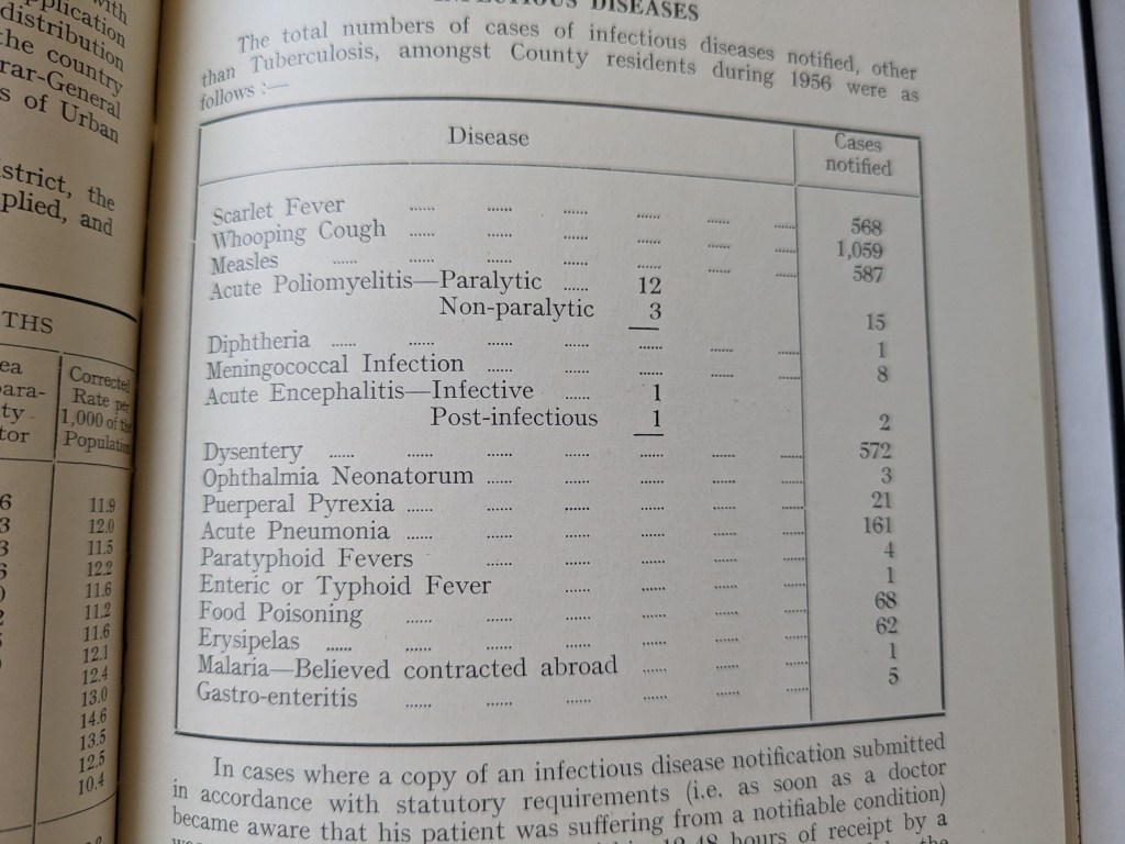 From p27 of the “Annual Report of the County Medical Officer Nottinghamshire 1956” I can also see case numbers for some other interesting infectious diseases.