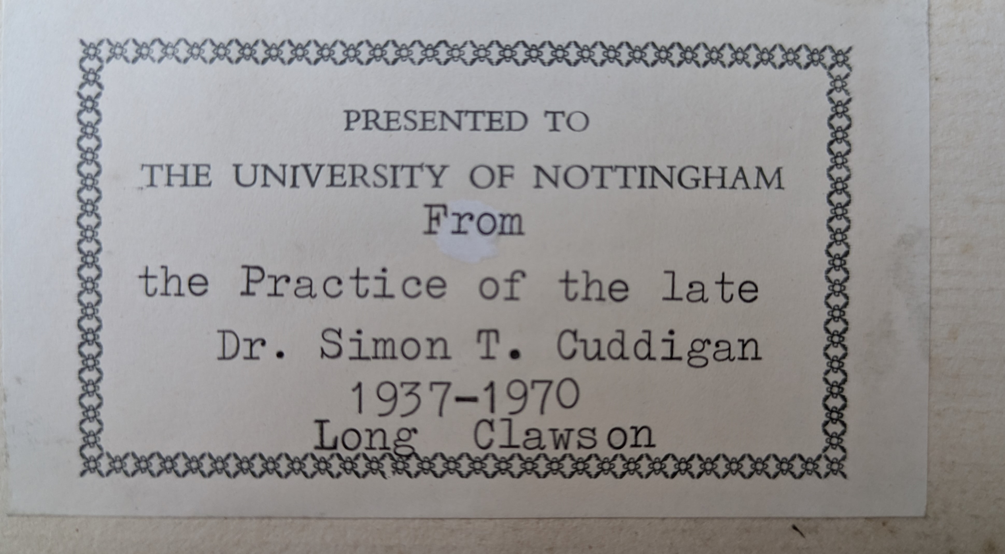 Presentation note on the front cover.